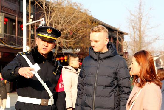 为了突出本次保障服务群众的要求,城管执法总队提前印制了一批服务指南,服务好群众。“当群众意外受伤时,可向身边最近的定岗队员求助;当群众迷路时,可向身边最近的定岗人员咨询(询问公交、地铁、公厕位置和停车场信息);当您遇到紧急情况(孩子走失,老人需要帮扶)时,也可联系就近的定岗人员。”这些温馨的提示都是城管执法保障举措。为了服务好外国友人,市城管执法总队专门抽调了一批学历高、外语水平好的队员,设立英语服务岗,为前往观灯的外籍游客提供指路、应急帮助等服务。